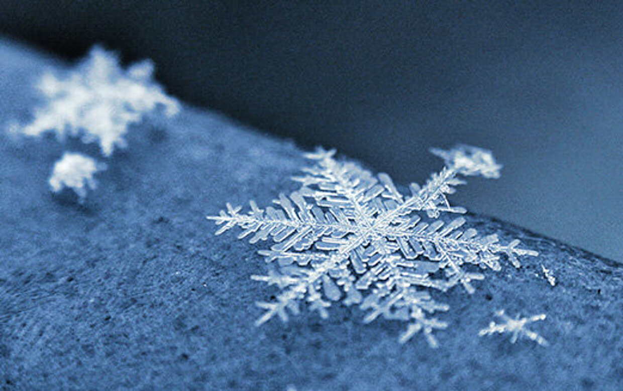 • Kunst auf Molekülebene: Die sechseckige Struktur der Flocken spiegelt die Wasserstoffbrückenbindung von H2O-Molekülen wider.